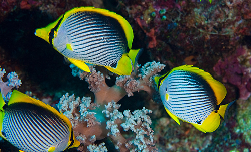 Black-backed butterflyfish nibbling on soft coral.